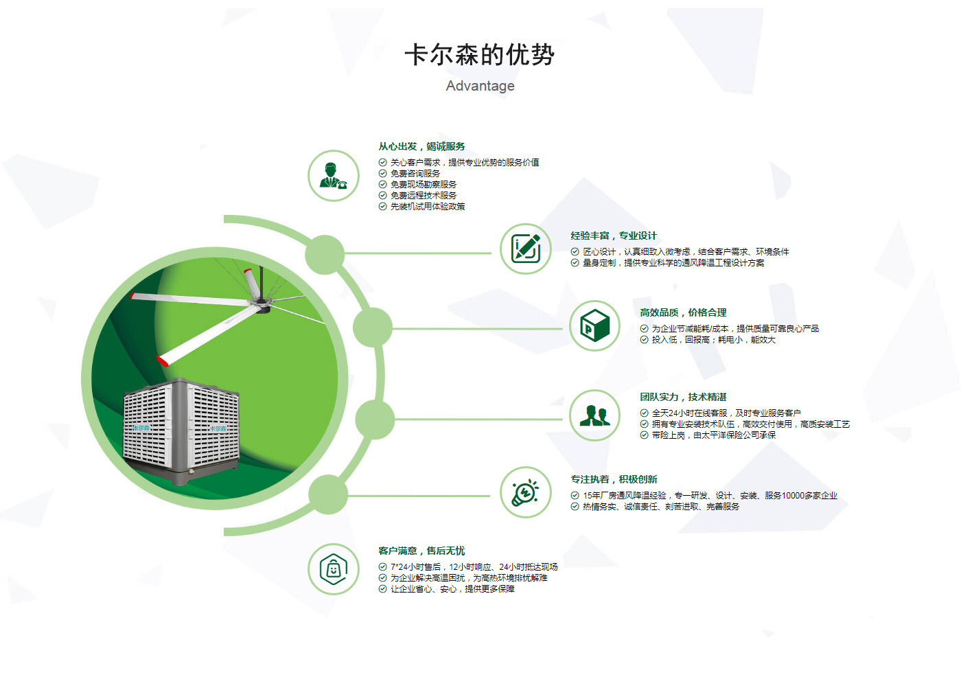 應(yīng)用范圍: 適用于高溫或有異味的車間:熱處理廠、鑄件廠、塑料廠、鋁型材廠、制鞋廠、皮件廠、電鍍廠、印染廠等各種化工廠等。 適用于勞動密集型企業(yè):服裝廠,各類裝配車間,網(wǎng)吧等。 適用于需要降溫又需要一定濕度的場所:棉紡廠、毛紡廠、麻紡廠、織布廠、化纖廠、經(jīng)編廠、加彈廠、針織廠、絲織廠、襪廠等各類紡織廠。 適用于:倉儲物流領(lǐng)域、園藝溫室大棚通風降溫、畜牧場降溫等場所。 全國服務(wù)熱線:13960350919